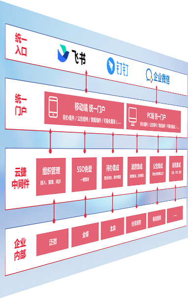 对协作平台提供支持服务,,支持企业应用与协作平台对接,,,包含组织同步、、、消息集成、、、、待办集成等。。。。支持目前主流的协作平台:钉钉、、、、企微和飞书。。。